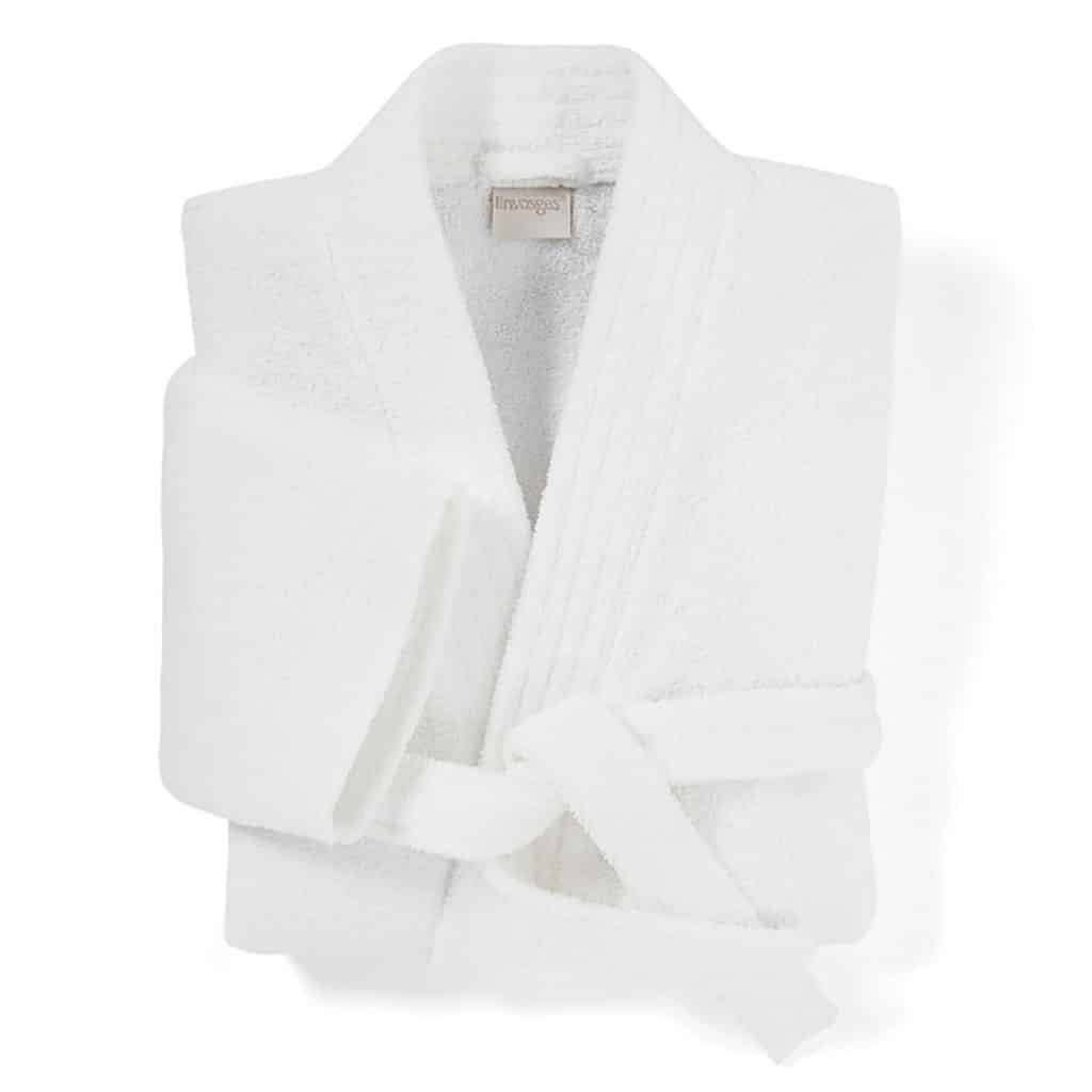 Όπως συμβαίνει με όλα τα υφάσματα της συλλογής μας Linvosges για τη φιλοξενία, τα φινιρίσματα των μπουρνούζιών μας είναι σχεδιασμένα για επαγγελματική χρήση. Κατασκευασμένο με την παραμικρή λεπτομέρεια για να ανταποκρίνεται στις απαιτήσεις των ξενοδόχων. Τα στυλ μας έχουν το ίδιο τελείωμα για όλα τα μεγέθη, με χαμηλότερες τσέπες, γάντζο στο γιακά του σάλι ή στο γιακά του κιμονό και ζώνη με θηλιές ζώνης που δένει στη μέση.