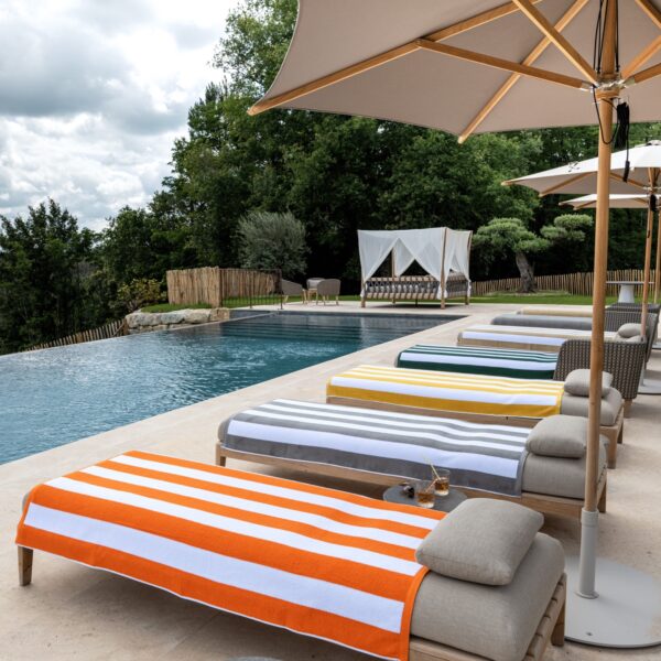 - Linge de bain premium : serviettes, peignoirs doux, absorbants et durables, pensés pour un usage quotidien en hôtellerie et spa.