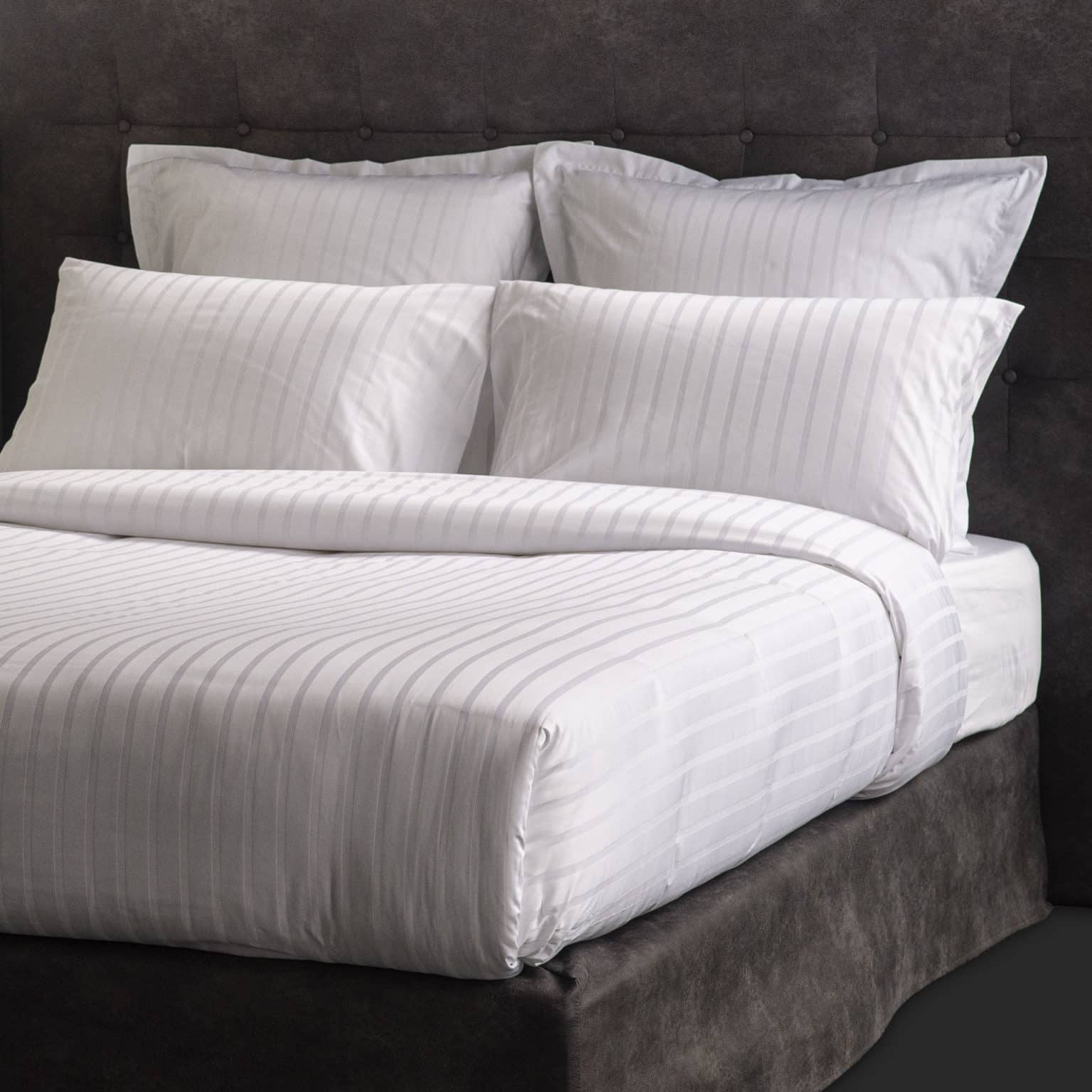 - Drap plat en polycoton 300 filsxin². Un jeu de rayures mates et satinées de 10 et 24mm donne à cette toile une allure chic.