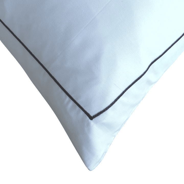 - En pur satin de coton, les taies d'oreiller forme sac portefeuille sont parées d'un bourdon noir en encadrement.